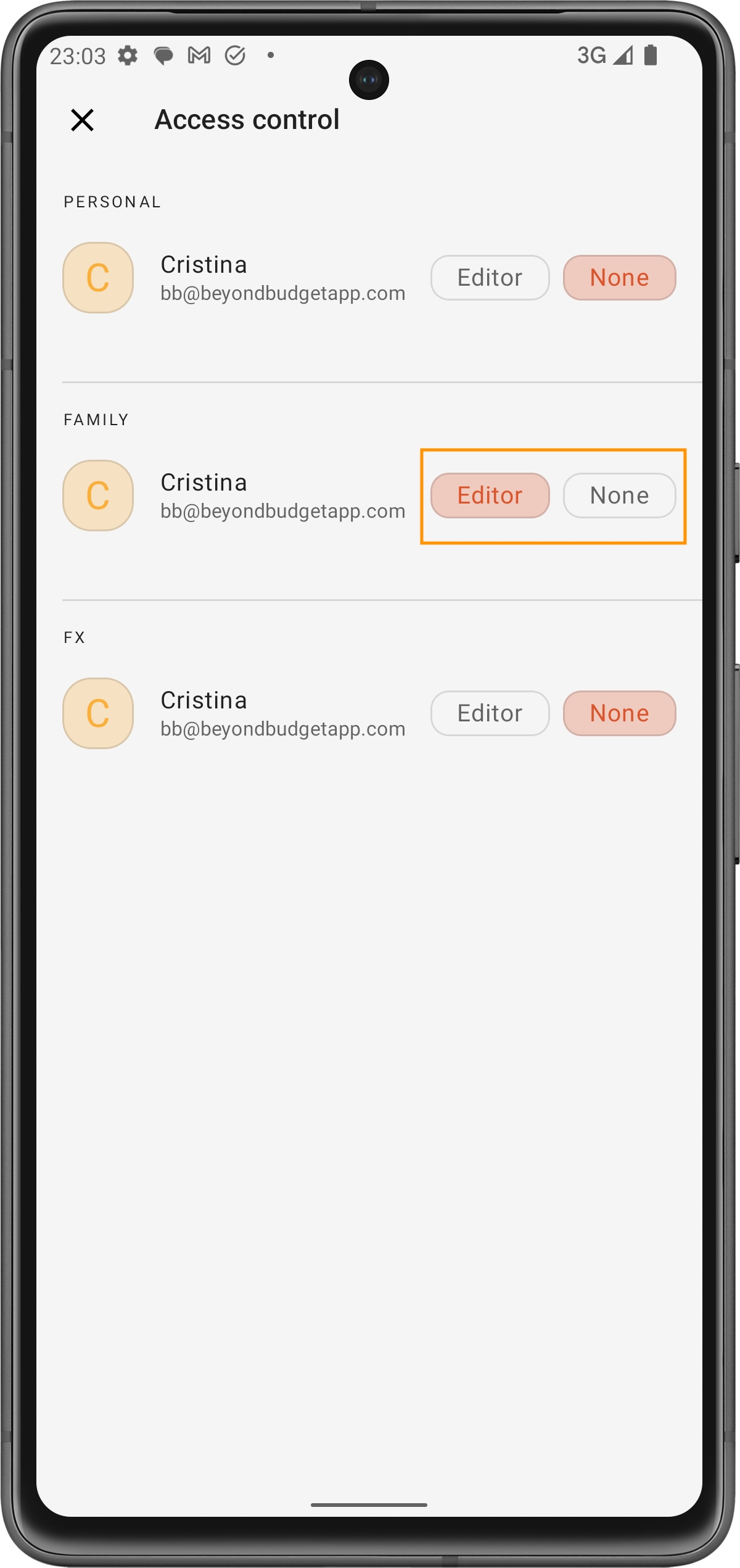 Depois que os membros aceitarem o convite, você pode gerenciar o acesso deles tocando nos três pontos verticais ao lado do nome.