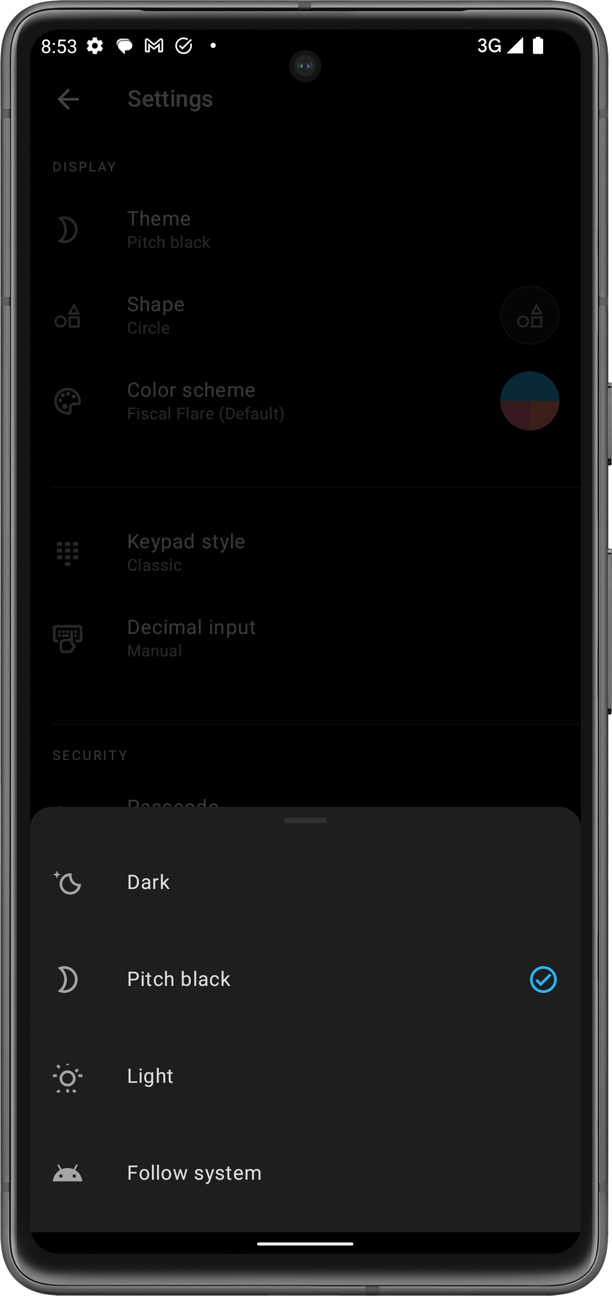 Preto Total: Criado para quem gosta de pretos verdadeiros, esse tema é otimizado para telas OLED, oferecendo um preto mais profundo e intenso, que economiza bateria e cria uma interface elegante e minimalista.