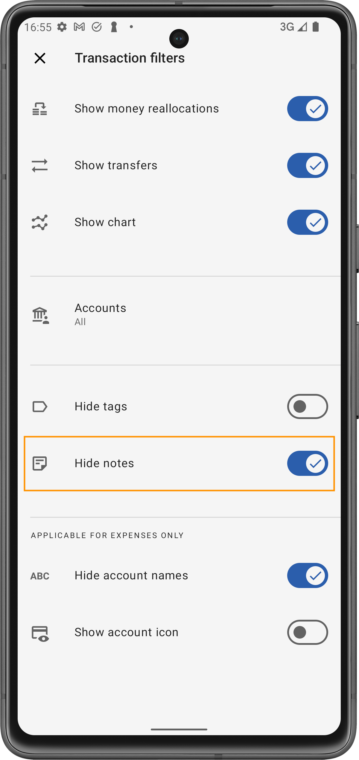 Você também pode optar por exibi-las diretamente na lista de transações do app. Isso significa que, sempre que você visualizar suas transações, essas notas estarão sempre visíveis, fornecendo contexto imediato e clareza.
