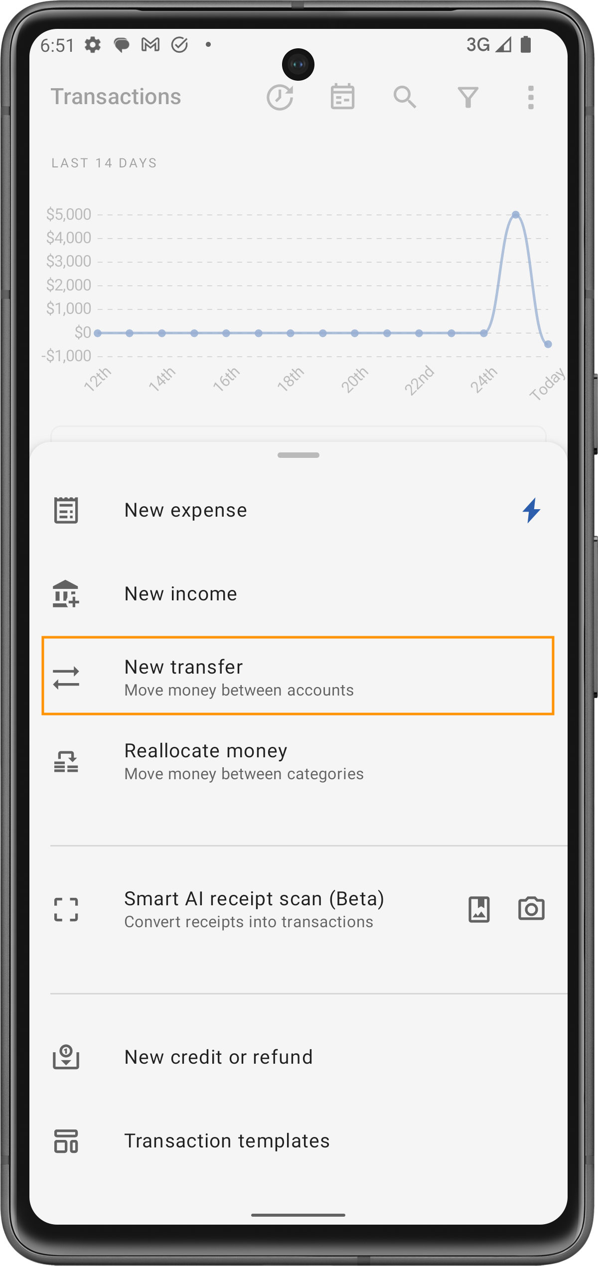 As transações de transferência não afetam suas alocações de orçamento, pois simplesmente movem dinheiro entre suas próprias contas. A receita já deve ter sido alocada nas categorias do seu orçamento quando foi registrada inicialmente, então as transferências afetam apenas os saldos das contas, não a distribuição do orçamento.