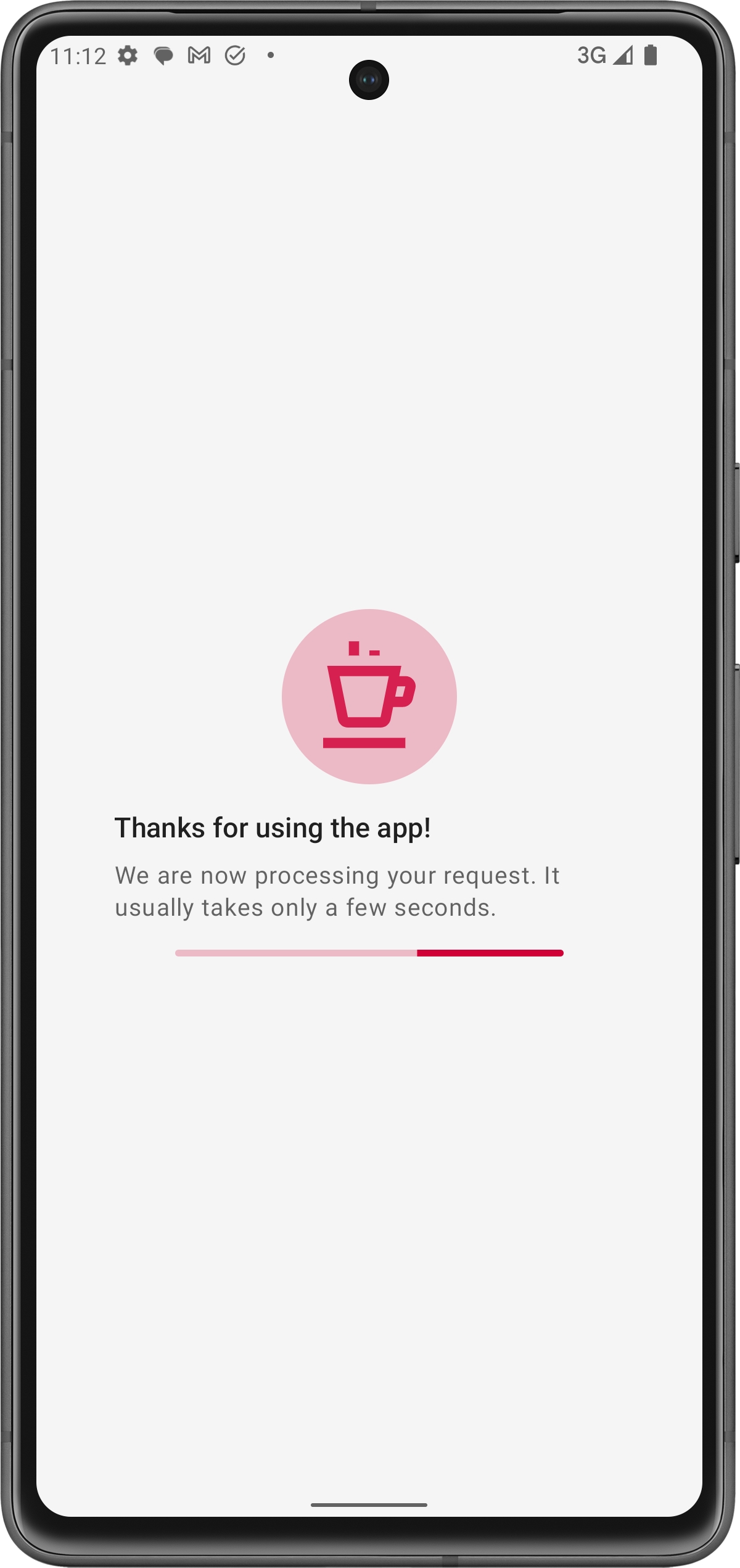 Após tocar em excluir, você verá uma tela de carregamento enquanto seu pedido é processado.