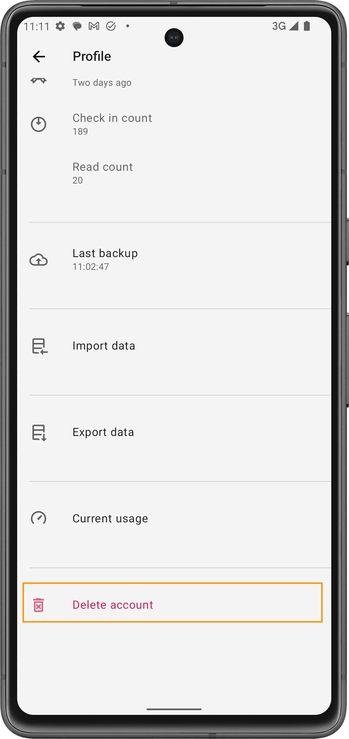 Role para baixo na seção Perfil até encontrar a opção Excluir conta na parte inferior.